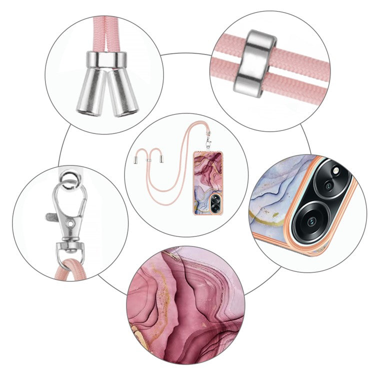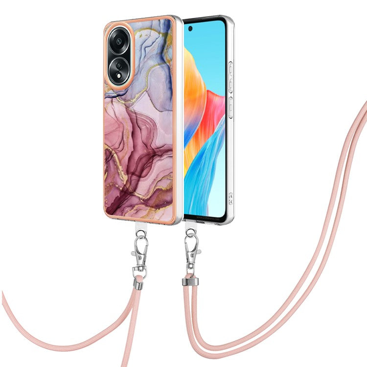 YB IMD Series-18 Style E for Oppo A58 4G Case Marble Pattern Electroplating Cover with Lanyard - Rose Gold