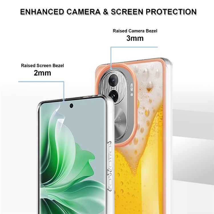 YB IMD Series-19 Style-D For Oppo Reno11 Pro 5G (Global) Electroplated Case TPU Pattern Print Back Phone Cover - Beer