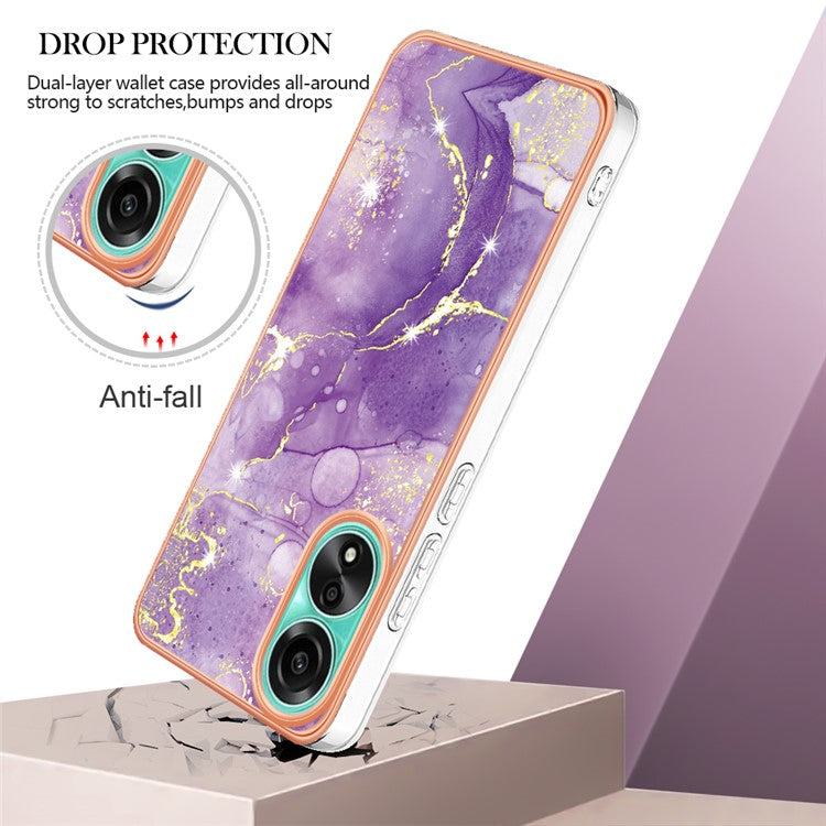 YB IMD Series-2 For Oppo A78 4G Electroplated Marble Phone Case IMD TPU Anti-Scratch Cover - Purple 002