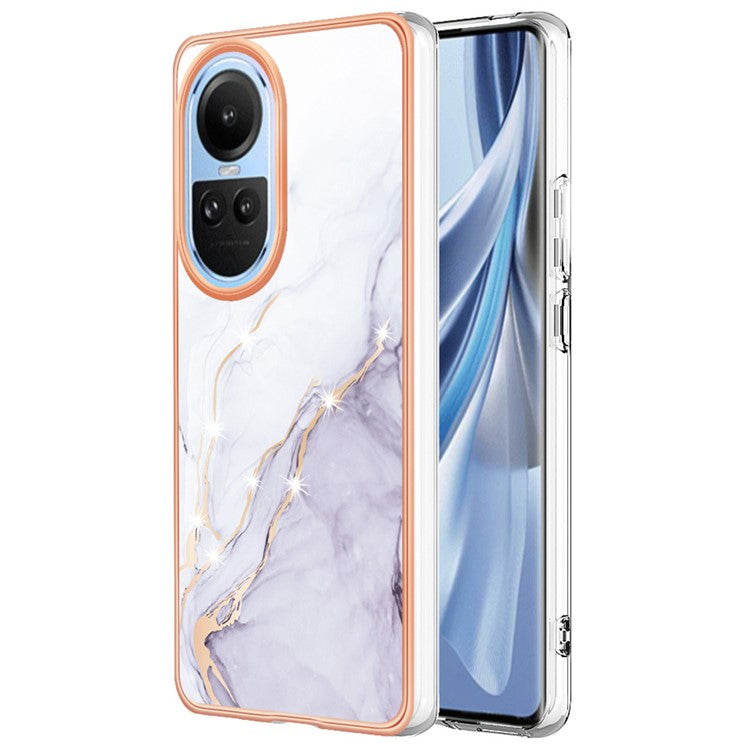 YB IMD Series-2 for Oppo Reno10 5G (Global) Electroplated TPU Case Marble Pattern IMD Protective Phone Cover - White 006