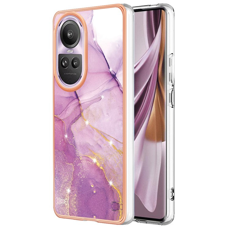 YB IMD Series-2 for Oppo Reno10 Pro 5G (Global) Marble Pattern Phone Case Electroplating Soft TPU IMD Cover - Purple 001