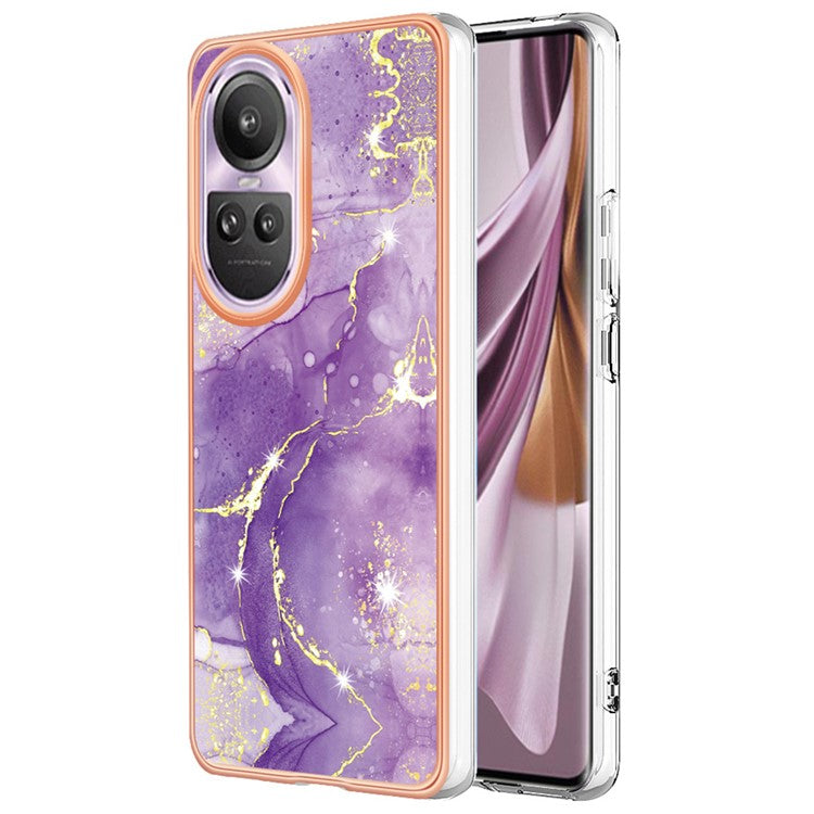 YB IMD Series-2 for Oppo Reno10 Pro 5G (Global) Marble Pattern Phone Case Electroplating Soft TPU IMD Cover - Purple 002
