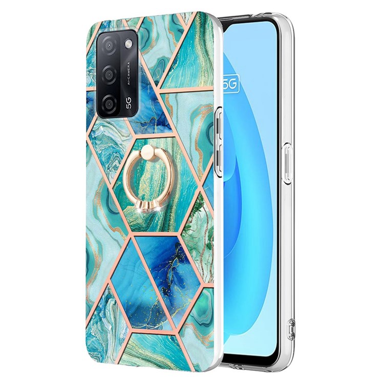YB IMD Series-7 for Oppo A53s 5G/A55 5G/A54 4G/A16/A54s Kickstand Phone Case Marble Pattern IMD Electroplating TPU Protective Cover - Green