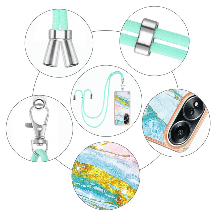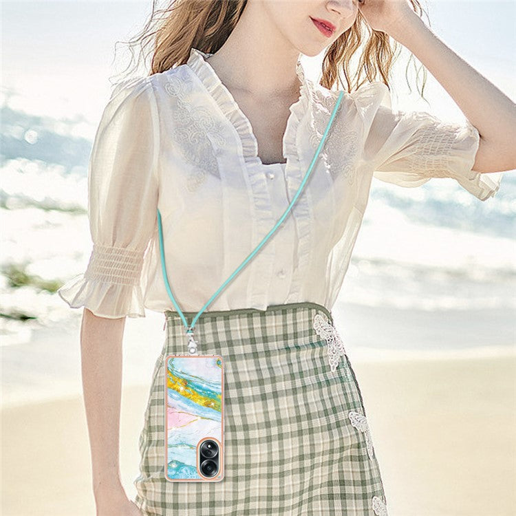 YB IMD Series-9 For Oppo A58 4G Phone Cover Electroplating Marble Pattern IMD TPU Case - Green 004