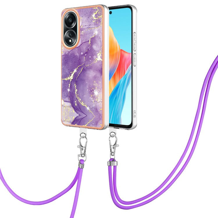 YB IMD Series-9 For Oppo A58 4G Phone Cover Electroplating Marble Pattern IMD TPU Case - Purple 002