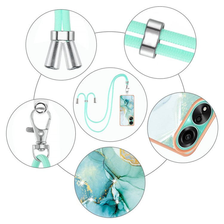 YB IMD Series-9 For Oppo A78 4G Phone Cover Marble Pattern Electroplating Case with Lanyard - Green 003