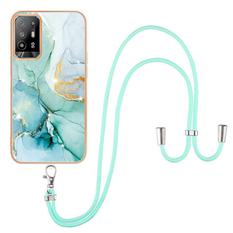 YB IMD Series-9 Marble Pattern Case for Oppo A95 5G/A94 5G Ultra-slim Light Electroplating Frame TPU IMD Lanyard Mobile Phone Case - Green 003