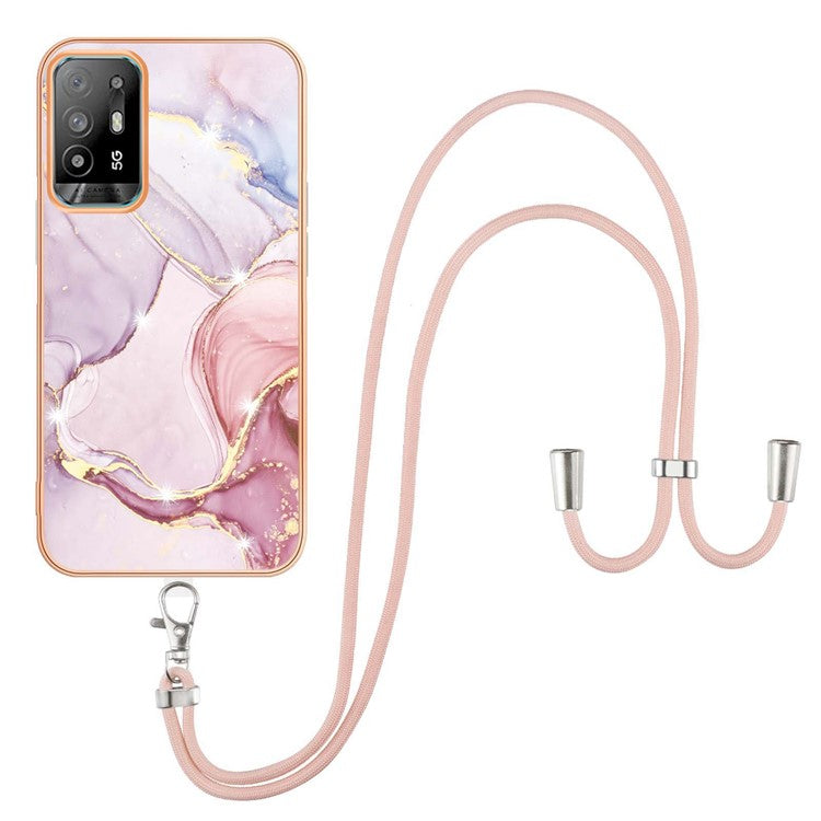 YB IMD Series-9 Marble Pattern Case for Oppo A95 5G/A94 5G Ultra-slim Light Electroplating Frame TPU IMD Lanyard Mobile Phone Case - Rose Gold 005