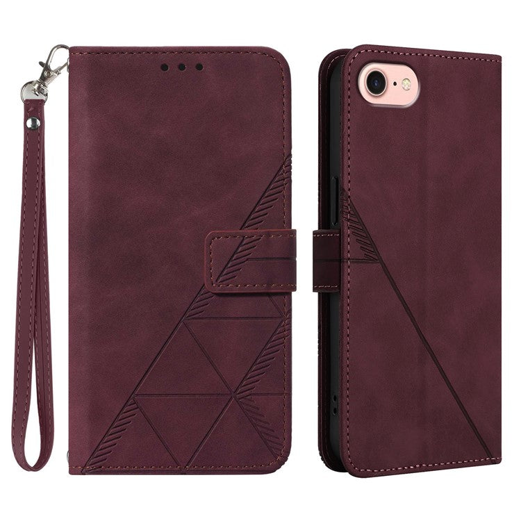 YB Imprinting Series-1 For iPhone 16e Case Magnetic Leather Wallet Phone Cover with Handy Strap - Wine Red