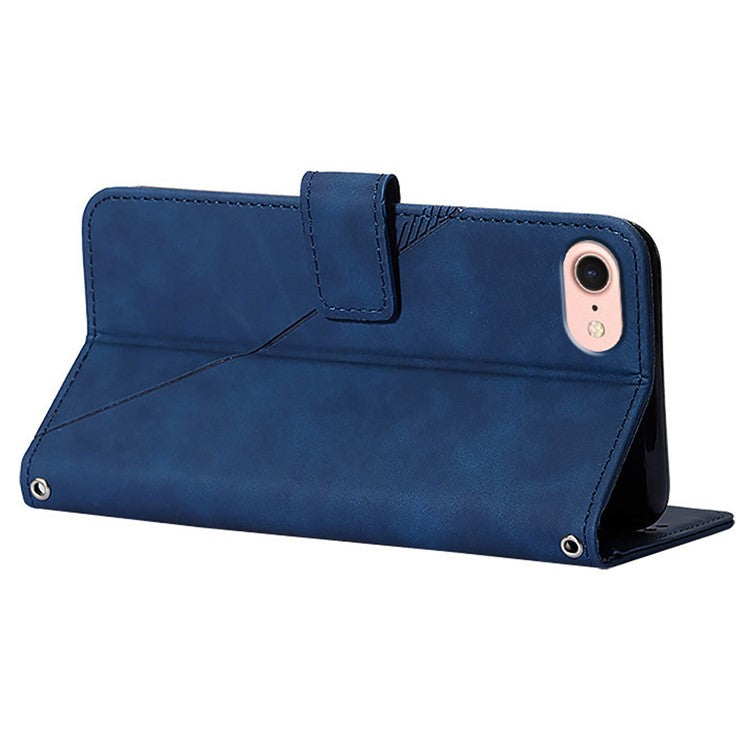 YB Imprinting Series-1 For iPhone SE (2025) Case Magnetic Leather Wallet Phone Cover with Handy Strap - Sapphire