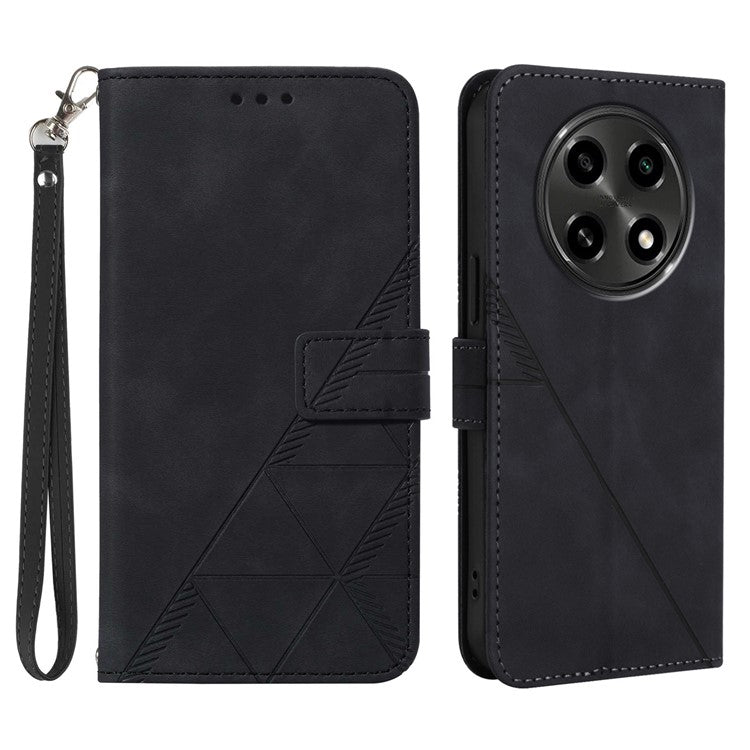 YB Imprinting Series-1 For Oppo A2 Pro 5G / A3 Pro (China) 5G Case PU Leather Wrist Strap Magnetic Closure Phone Cover - Black