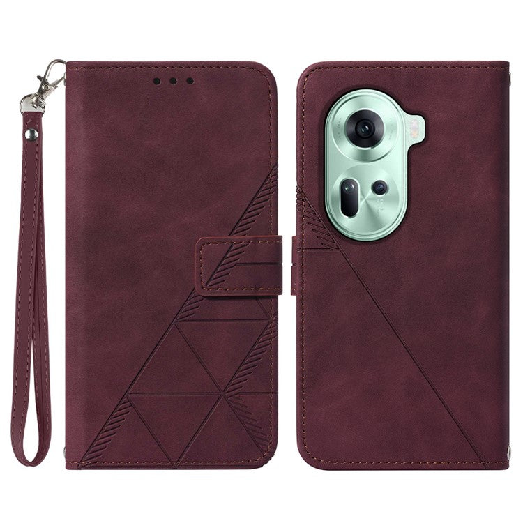 YB Imprinting Series-1 For Oppo Reno11 5G (Global) Case Wallet PU Leather Line Pattern Phone Cover Handbag - Wine Red