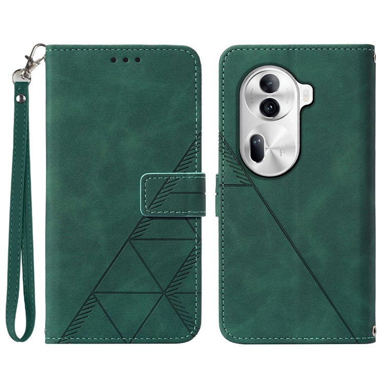YB Imprinting Series-1 For Oppo Reno11 Pro 5G (Global) Case Leather Stand Flip Phone Cover with Hand Strap - Blackish Green