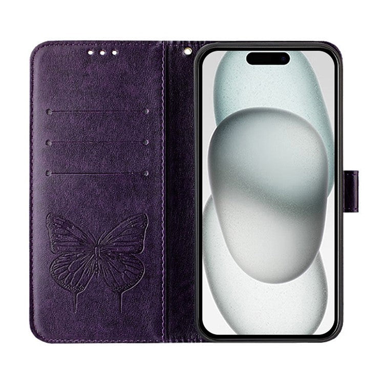 YB Imprinting Series-4 For iPhone SE (2025) Wallet Case Shockproof Leather Phone Cover with Hand Strap - Dark Purple