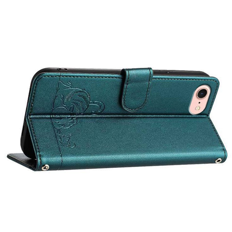 YB Imprinting Series-9 for iPhone SE (2025) Case Cat Mouse Pattern RFID Blocking Leather Cover - Dark Green