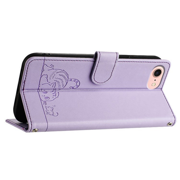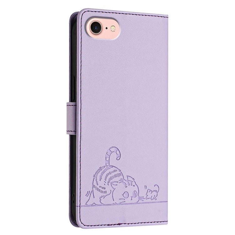 YB Imprinting Series-9 for iPhone SE (2025) Case Cat Mouse Pattern RFID Blocking Leather Cover - Purple