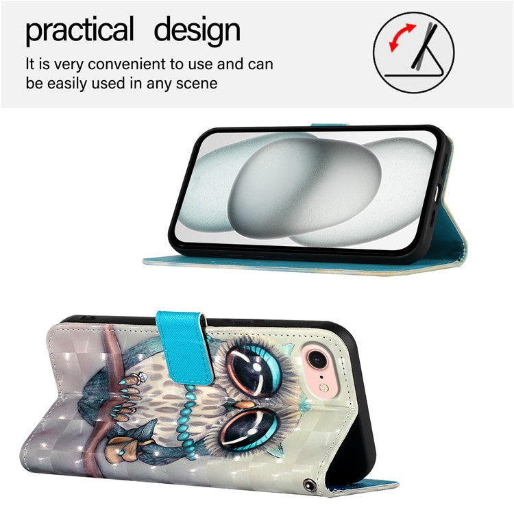 YB Pattern Printing Leather Series-2 For iPhone 16e Protective Case with Hand Strap - Grey Owl