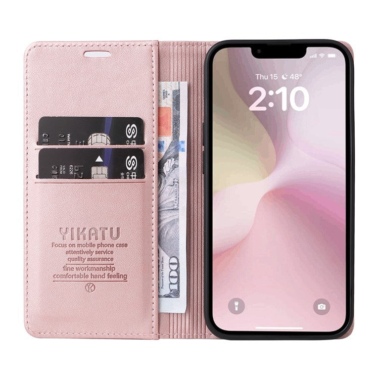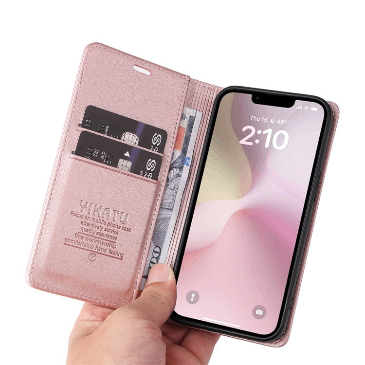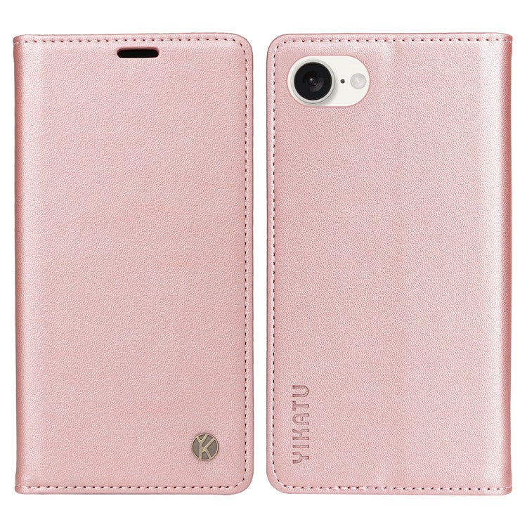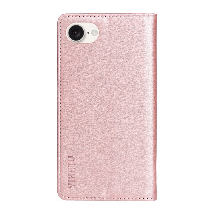 YIKATU YK-001 For iPhone 16e Case Stand Wallet PU Leather Phone Cover - Rose Gold