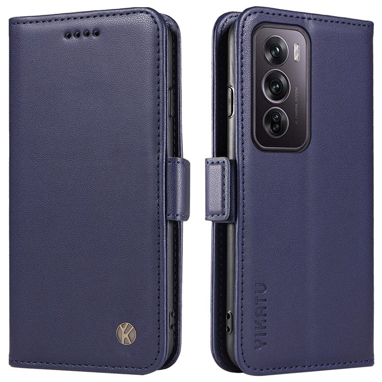YIKATU YK-003 For Oppo Reno12 Pro 5G (Global) / (China) Case Side Clasps Anti-drop Leather Phone Cover - Navy Blue