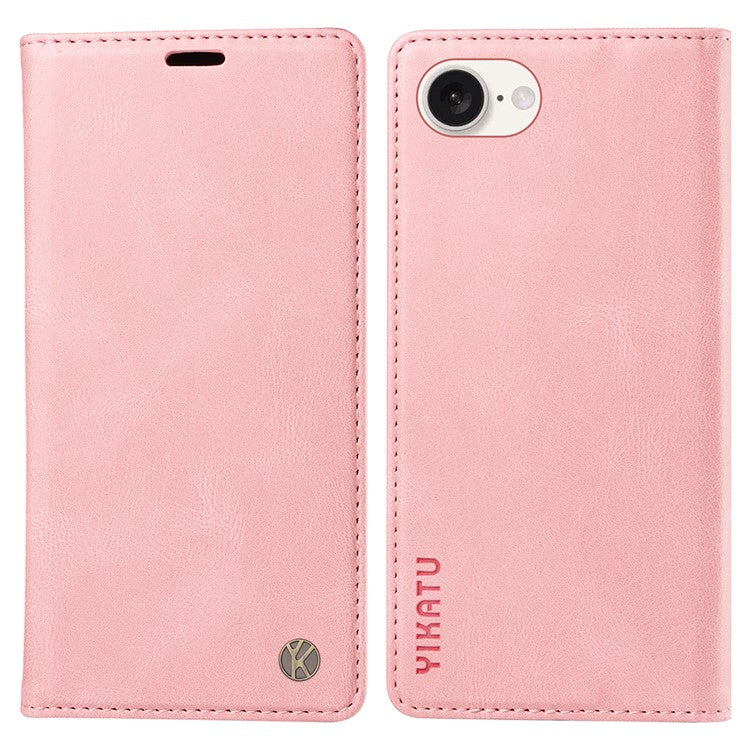 YIKATU YK-004 For iPhone 16e Case PU Leather Stand Magnetic Phone Cover - Pink