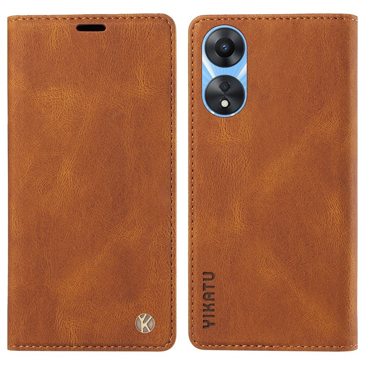 YIKATU YK-004 For Oppo A58 5G / A78 5G Skin-touch Leather Cover Flip Wallet Stand Phone Case - Brown
