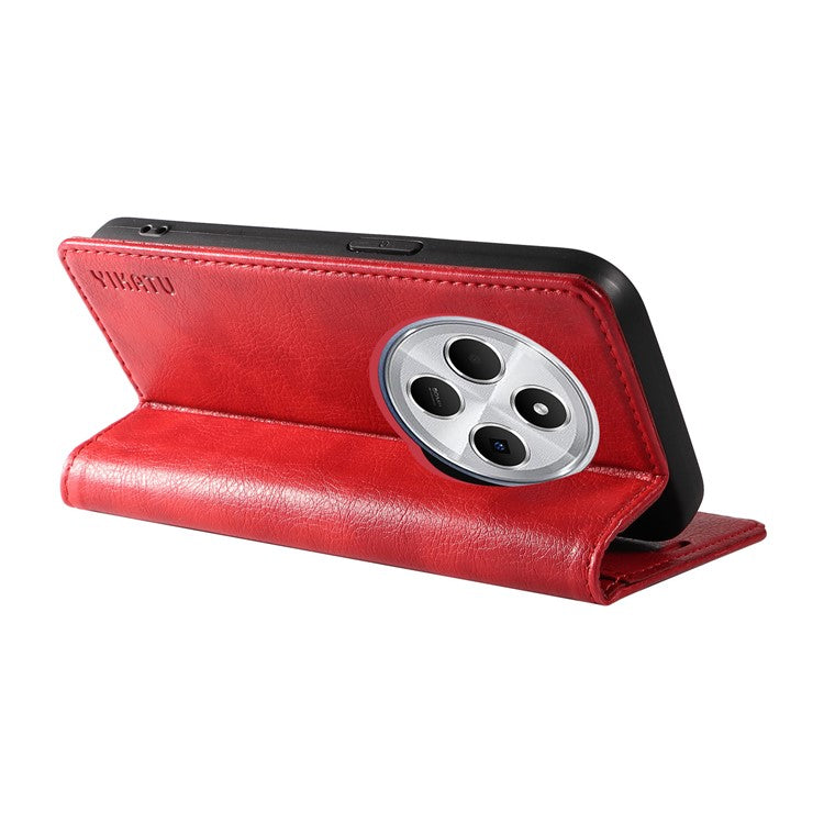 YIKATU YK-006 For Xiaomi Poco C75 4G / Redmi 14R 5G / 14C 4G Case Wallet Litchi Grain Leather Phone Cover Magnetic Auto-Absorbed - Red