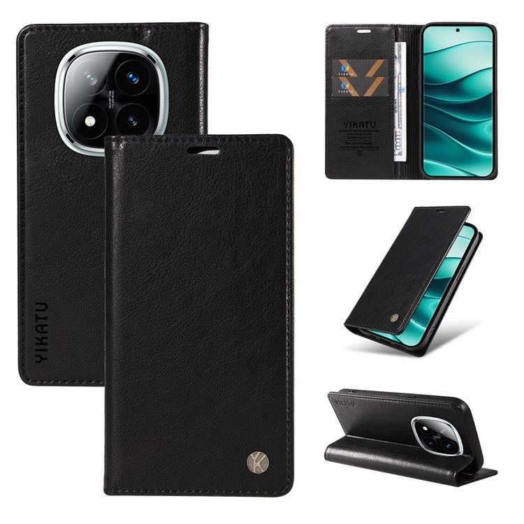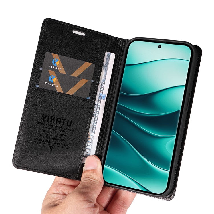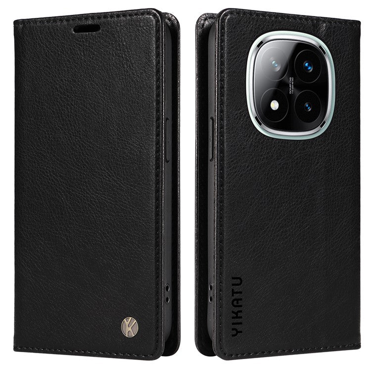 YIKATU YK-006 For Xiaomi Redmi Note 14 5G Case Magnetic Closure Leather Phone Cover Litchi Texture - Black