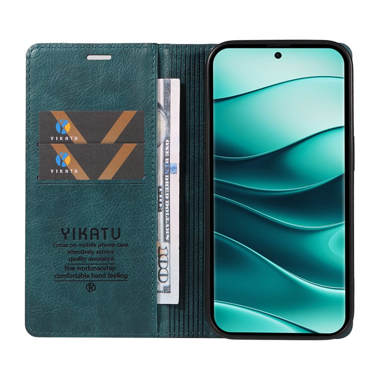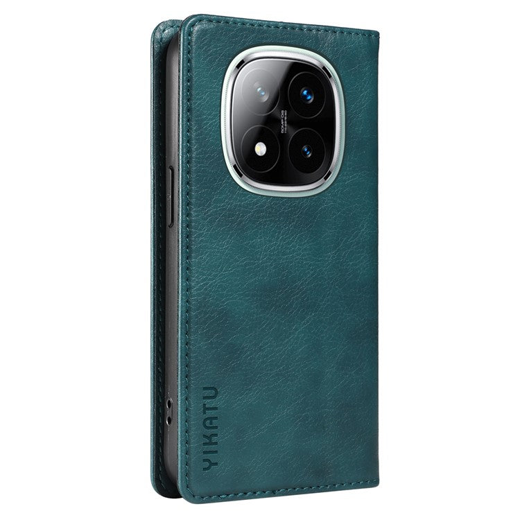 YIKATU YK-006 For Xiaomi Redmi Note 14 5G Case Magnetic Closure Leather Phone Cover Litchi Texture - Blue