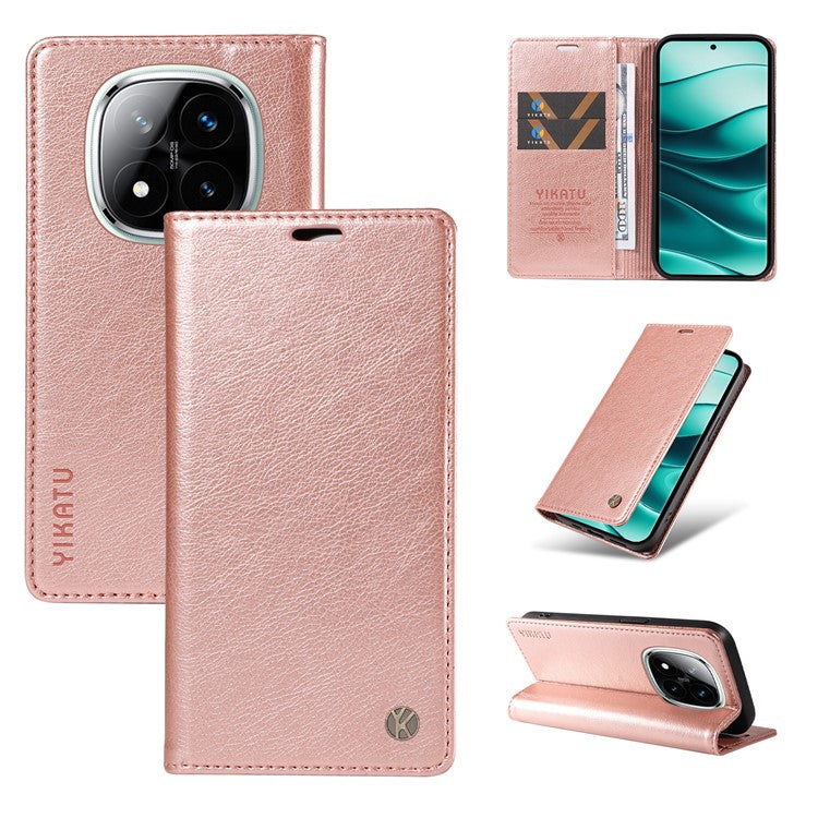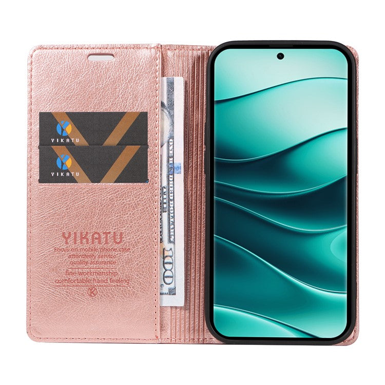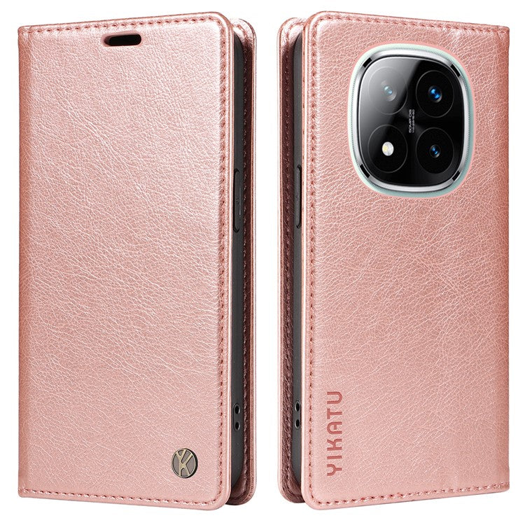 YIKATU YK-006 For Xiaomi Redmi Note 14 5G Case Magnetic Closure Leather Phone Cover Litchi Texture - Rose Gold