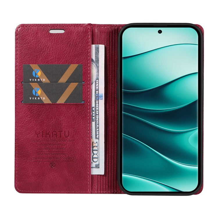 YIKATU YK-006 For Xiaomi Redmi Note 14 5G Case Magnetic Closure Leather Phone Cover Litchi Texture - Wine Red