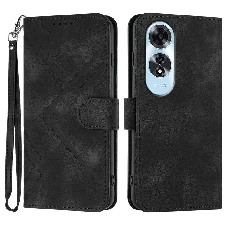 YX0040 For Oppo A60 4G Case Wallet Geometric Phone Leather Cover with Hand Strap - Black