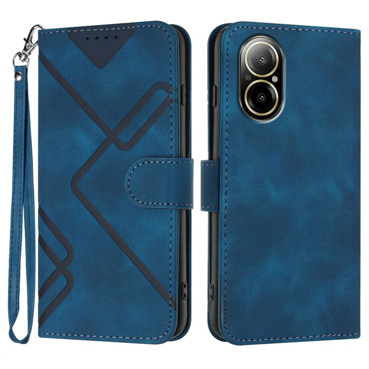 YX0040 For Realme C67 4G Case Wallet Stand PU Leather Geometry Phone Cover - Sapphire