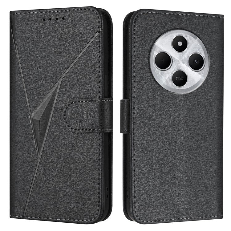 YX0090 For Xiaomi Poco C75 4G / Redmi 14R 5G / 14C 4G Case Triangle Imprint Leather Phone Cover with Lanyard - Black