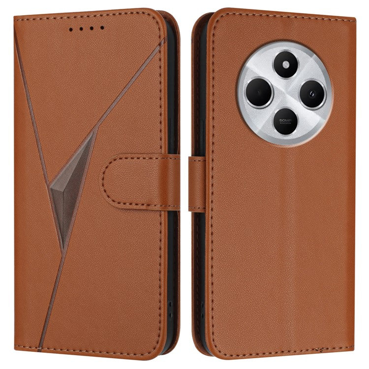 YX0090 For Xiaomi Poco C75 4G / Redmi 14R 5G / 14C 4G Case Triangle Imprint Leather Phone Cover with Lanyard - Coffee