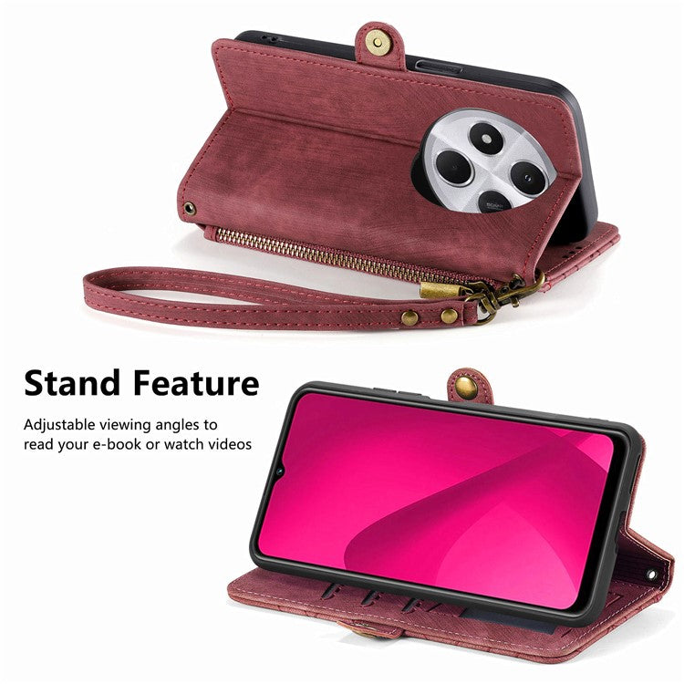 Zipper Phone Case For Xiaomi Redmi 14C 4G / 14R 5G / Poco C75 4G Wallet Geometry Lines Leather Phone Cover - Red