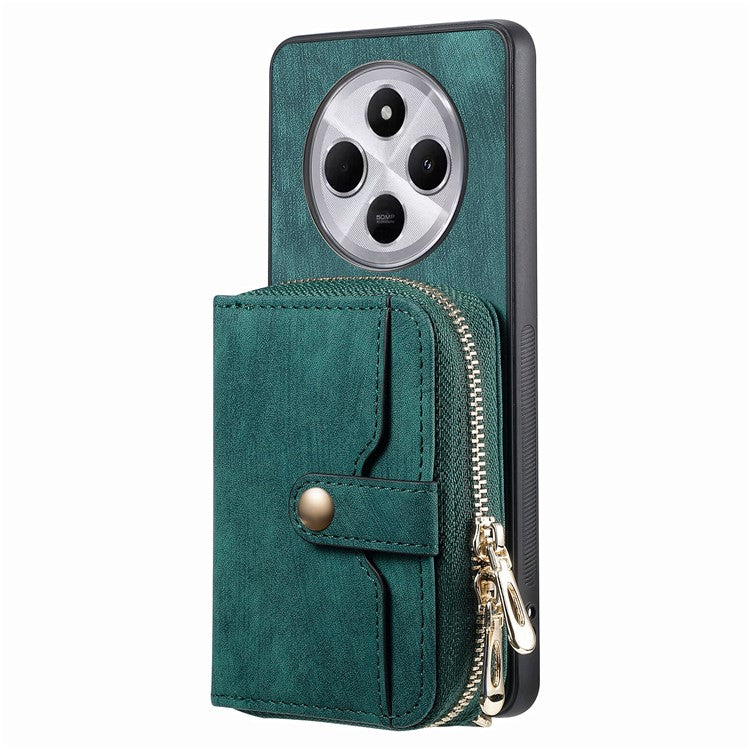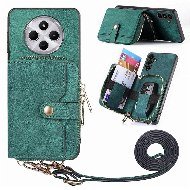 Zipper Wallet Phone Case For Xiaomi Redmi 14C 4G / 14R 5G / Poco C75 4G Leather Kickstand Back Cover with Shoulder Strap - Green