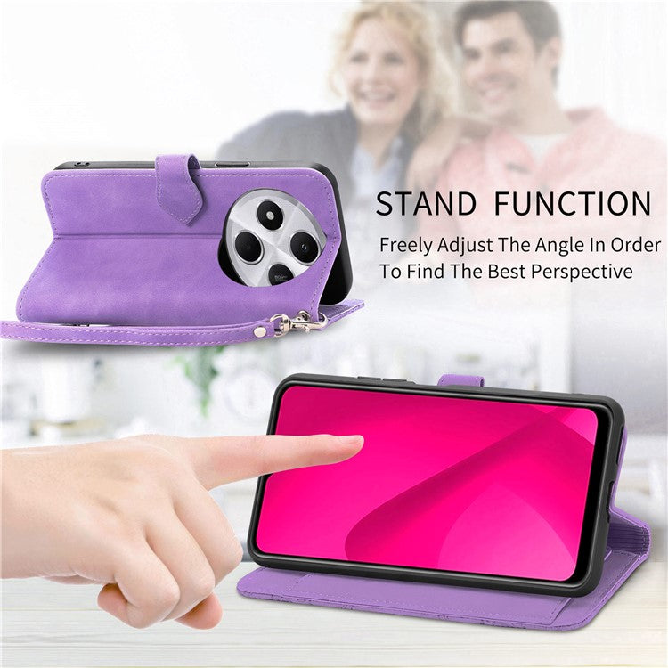 Zipper Wallet Phone Case For Xiaomi Redmi 14C 4G / 14R 5G / Poco C75 4G PU Leather Flower Imprint Phone Cover - Light Purple