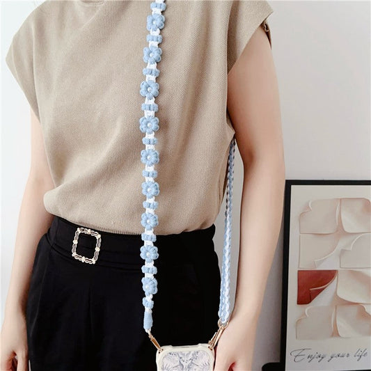 Adjustable Phone Lanyard Cotton Rope Braided Daisy Flower Crossbody Strap, Length: 120cm - Deep Pink