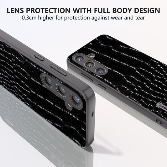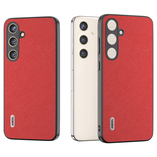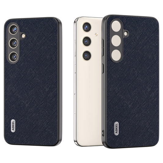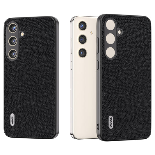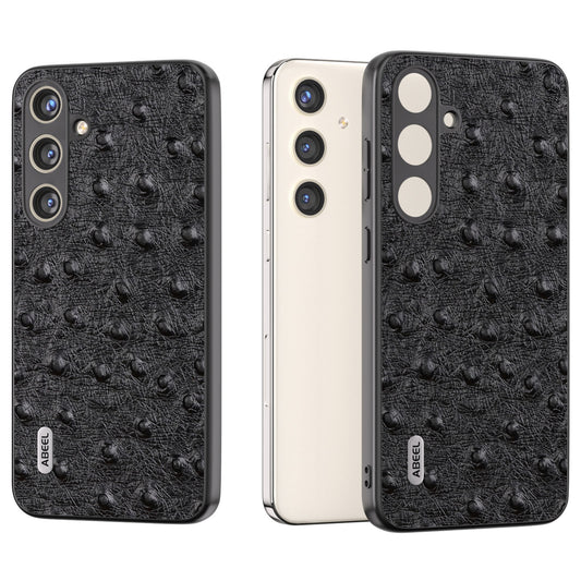 ABEEL For Samsung Galaxy S24+ Genuine Cow Leather Case Anti-slip Ostrich Pattern Phone Cover - Black