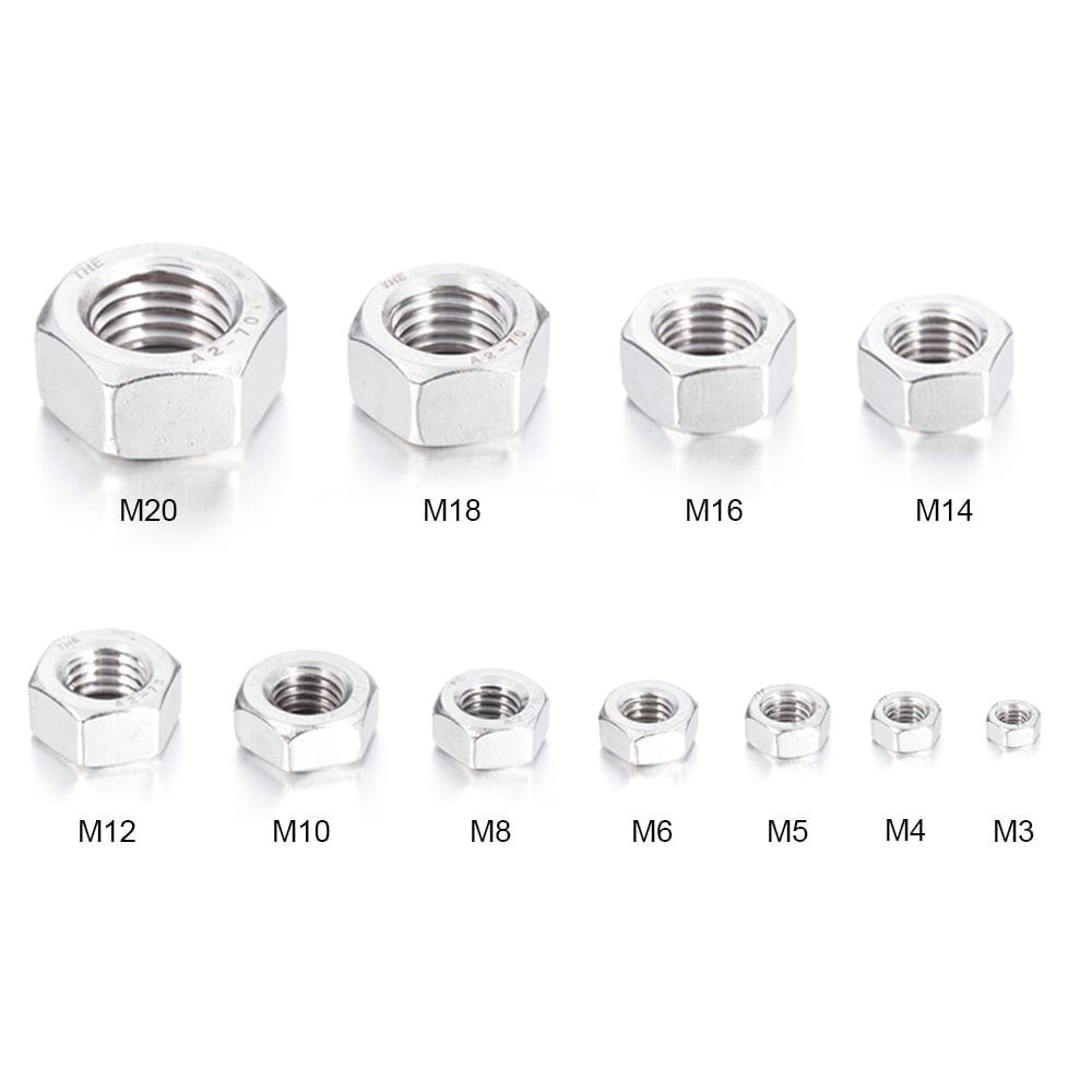 This nut has a smooth surface neat thread and excellent workmanship.Rugged and high durability.Features:The surface is smooth and free of burrs.Thread neat no missing tooth phenomenon.Beautiful appearance wide use.Strong and high durability well made.Specifications:Item type: NutMaterial: Stainless SteelSelection models: M3 M-4 M5 M6 M-8 M-10 M12 M14 M-16 M18 M20(optional)Package weight: M3: 7g/0.24ounces M-4: 8g/0.28ounces M5: 15.5g/0.54ounces M6: 19.5g/0.68ounces M-8: 32g/1.12ounces M-10: 61.5g/2.16ounces M12: 87.5g/3.08ounces M14: 120g/4.23ounces M-16: 155g/5.46ounces M18: 215g/7.58ounces M20: 273.5g/9.64ouncesPackage size: 120*80*20mm/4.72*3.14*0.78inchesPackage list:5pcs * Nut