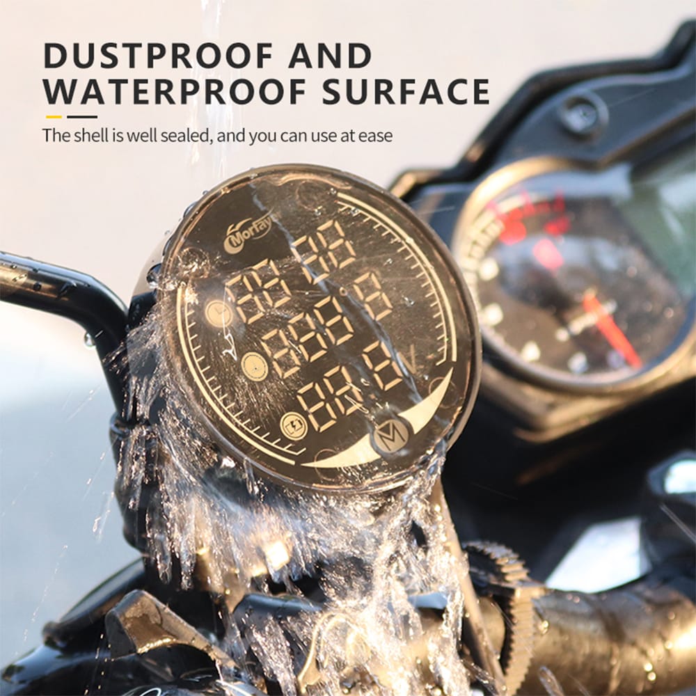 This high-definition LED night vision motorcycle digital meter integrates voltmeter timetable and thermometer. It is a 5-in-1 combination meter with various functions and outstanding quality.Features:- Compact Structure: Mini size easy to carry won't obstruct riding guaranteeing your safe riding.- Quality Material: Made of premium quality ABS material high impact resistance flame retardant wear resistant safe and durable.- Smart Chip: Fast recognition sensitive response anti-burn protection safe stable and reliable.- LED Panel Digital Display: Capable of reading in seconds more intuitive convenient and quicker.- DC Voltage Real-time Measurement: Capable of making your vehicle work at normal voltage to prolong your vehicle's service life.- Temperature Time Real-time Measurement: Avoiding accident caused by high temperature and convenient to read the time.- Rear View Mirror Installation: Easy installation and high stability.- Waterproof Dustproof: The shell features strong sealing super waterproof and dustproof.Specifications:Model: CD-3184Material: ABSColor: BlackTemperature Measuring: Air / Air+water (Optional)Input Voltage: 9V-24VApplicable Vehicle: MotorcycleInstallation Method: Rear view mirror installationItem Size: Approx. 6.5*6.5*1.7cm / 2.56*2.56*0.67inPackage Size: Approx. 12.3*10.6*4cm / 4.84*4.17*1.57inPackage Weight: Approx.172g / 6.07ozPacking List:1 * Digital Meter1 * Bracket1 * Installation Hardware Kit1 * Users Manual(English)