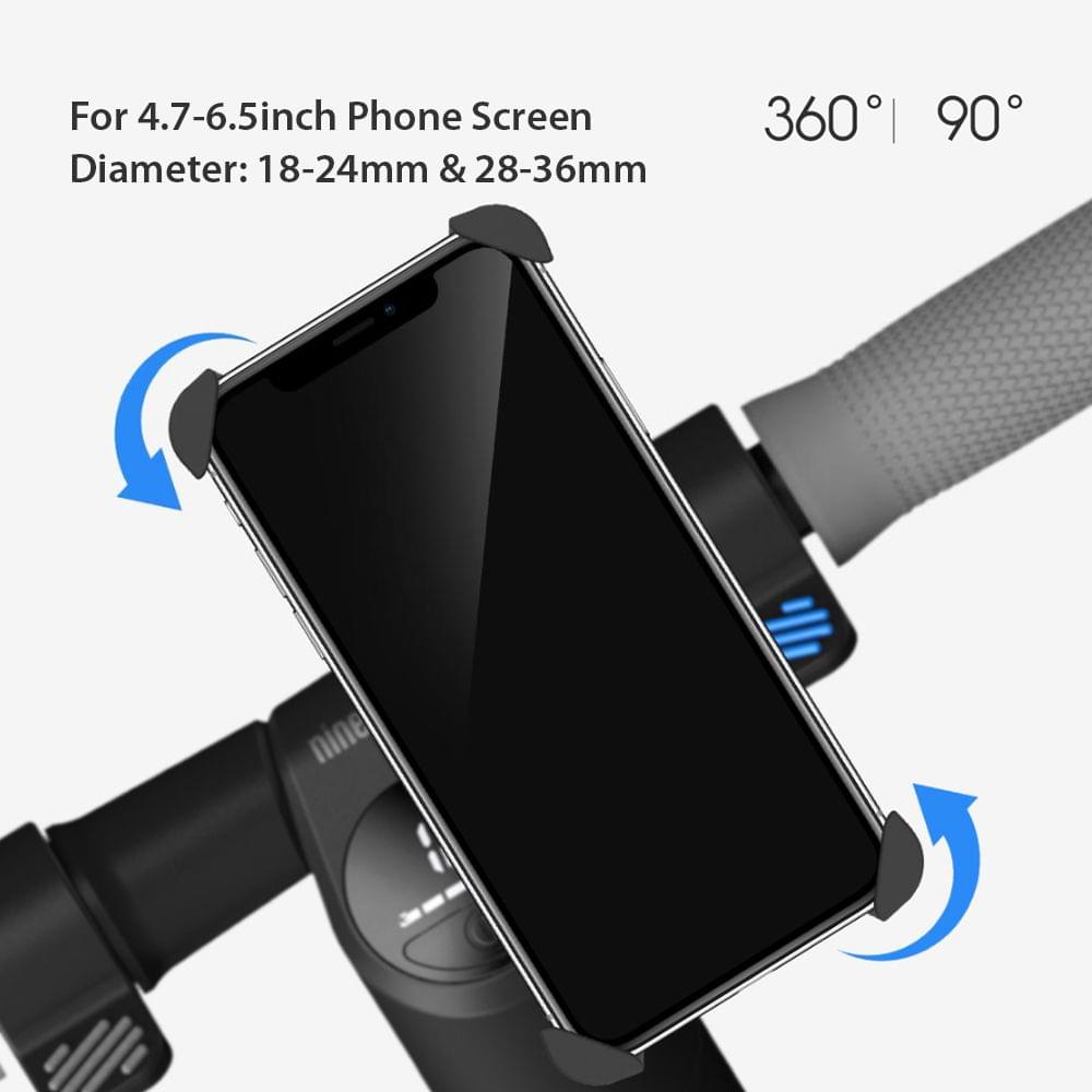 Xiaomi Mijia Segway-ninebot Scooter Phone Bracket 360 Degree Rotatable Holder For 4.7inch-6.5inch Mobile Phone Note: This product is xiaomi ecological chain brand product there is no any xiaomi marks on the products please note it.Features:- 360 degree rounded axis adjustment for offering any viewing angle you need.- Creative four-claw spring lock design tightly holds your phone's corner not easily falling down from your bicycle.- Adapt to the multiple Mobile Phone with 4.7inch-6.5inch screen size- Easy installation suitable for bicycle scooters with pipe diameters in the range of 18-24mm and 28-36mm.- Multiple reliable testd holder for keeping high security.Specification:Brand: Xiaomi Segway-ninebotProduct: Phone BracketModel: SR-168Color: BlackMaterial: ABS TPU PPpipe Diameters: 18-24mm and 28-36mm.(Suitable for Mijia Electric Scooter ninebot Kick Scooter ES1 ES2 )Phone Size: 4.7inch-6.5inchProduct size: Approx. 14.0*9.8 * 7.0cm / 5.51 x 3.86 x 2.76 inchesProduct weighs: Approx. 101g/3.56ozPackage Size: Approx. 16*10.5*9cm / 6.30 x 4.13 x 3.54 inchesPackage Weight: Approx. 200g /7.05ozNote:1.Item color may show slight aberration due to different shooting light and monitor display.2.Product size product weight and related specifications are theoretical values only. Actual measurements between individual products may vary.Package List1 * Bracket1 * Axis Lock