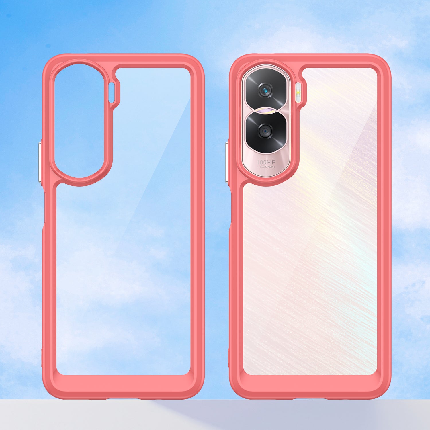 Uniqkart for Honor 90 Lite 5G / X50i TPU+Acrylic Mobile Phone Back Cover Clear Protective Shockproof Case - Red