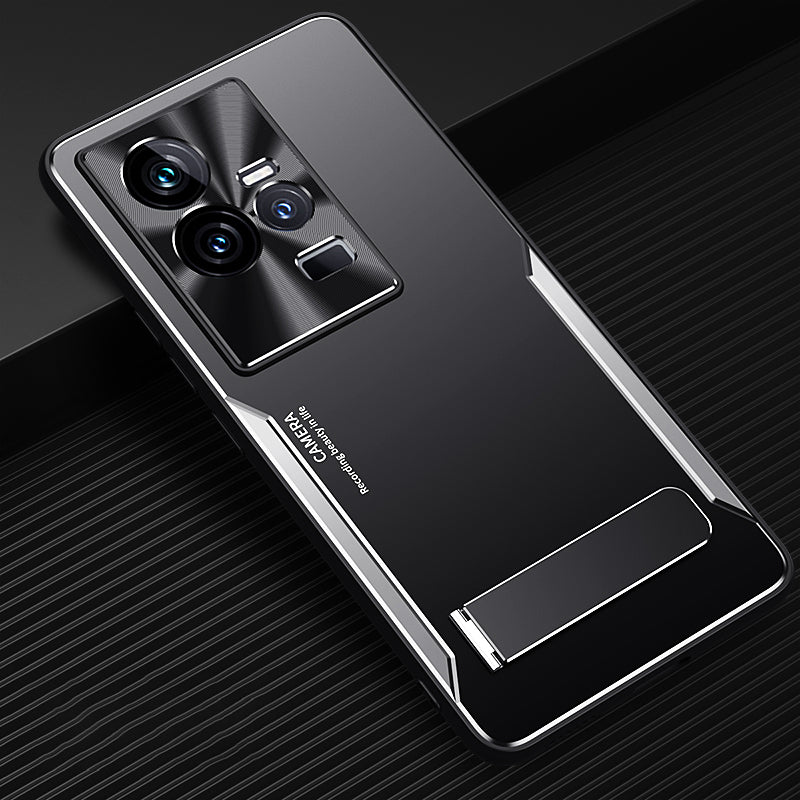 Uniqkart for vivo iQOO 11 5G TPU+Aluminium Alloy Cell Phone Shell Cover Kickstand Anti-Scratch Phone Case - Silver