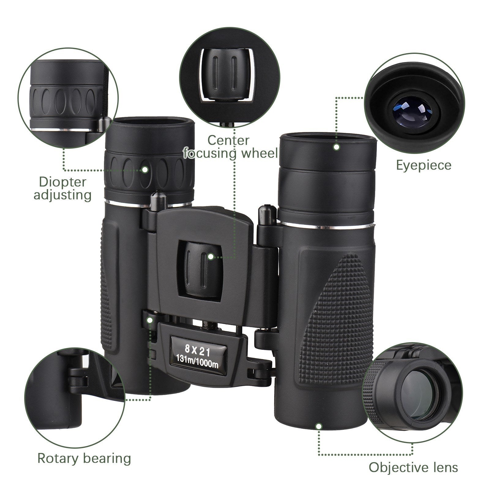- Clear Pictures: 8X magnification, large objective lens of 21mm diameter, 131m/1000m large field of view, presenting the beauty in the distance clearly