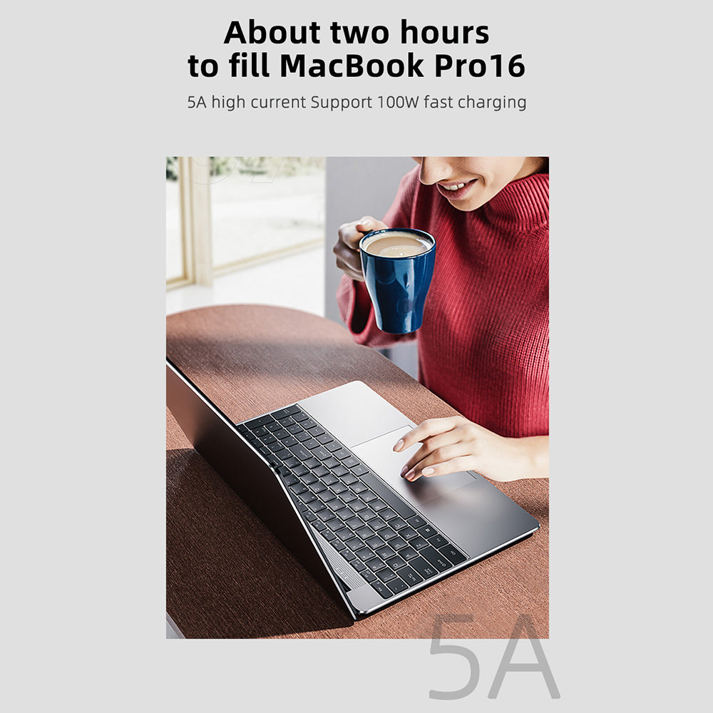 1.2m 100W Fast Charging Cable Male to Male 40Gbps High-speed Data Transformation Adapter Cable for Thunderbolt 4 Docking Station - Black