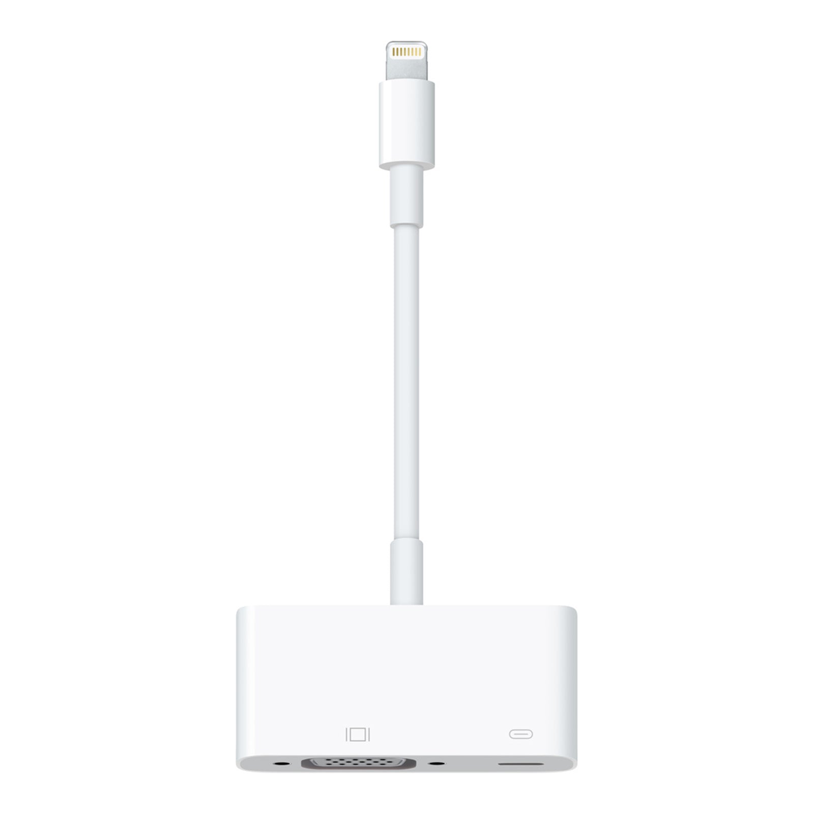 Just connect the lightning to VGA converter to the lightning port on the device, and then connect to the TV or projector via the VGA cable (not included)