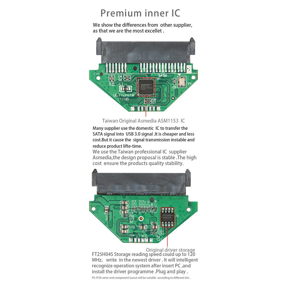 The speed of using USB2.0 to SATA can reach 480M/S, and the speed of USB3.0 to SATA can reach 5Gbps, which can support hard disks up to 2TB