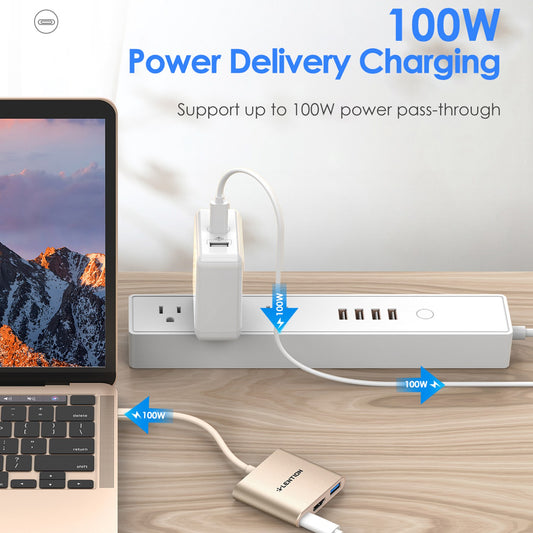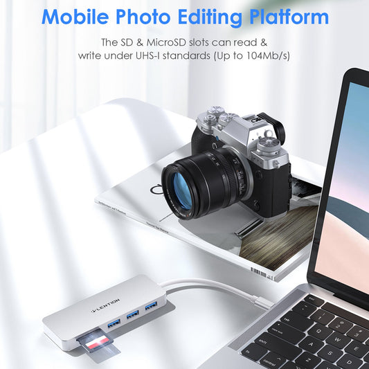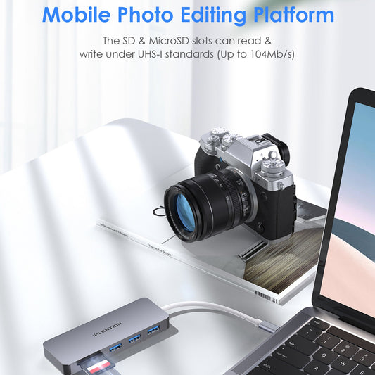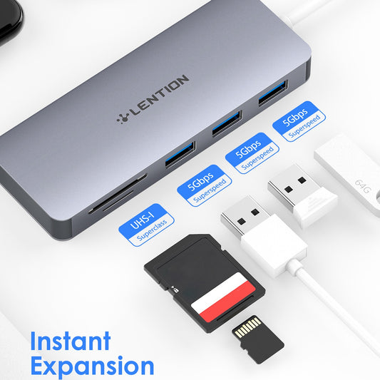 Uniqkart C15 USB-C Hub 3 USB-A 3.0 Ports Adapter SD / TF Card Reader Aluminum Alloy Converter - Grey