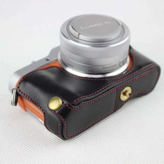Black - PU Leather Half Camera Case Bag Cover Protector for Panasonic GF7/GF8/GF9/GF10 Camera